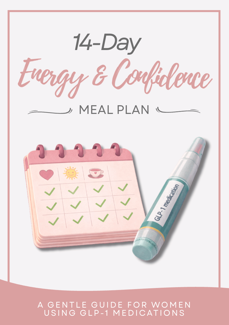 This simple 14-day meal plan was created to help women feel more nourished, steady, and confident during a time that can often feel confusing. Whether you’re using GLP-1 medications or just feeling unsure about what to eat, this plan offers calm, realistic guidance without rules, tracking, or pressure.